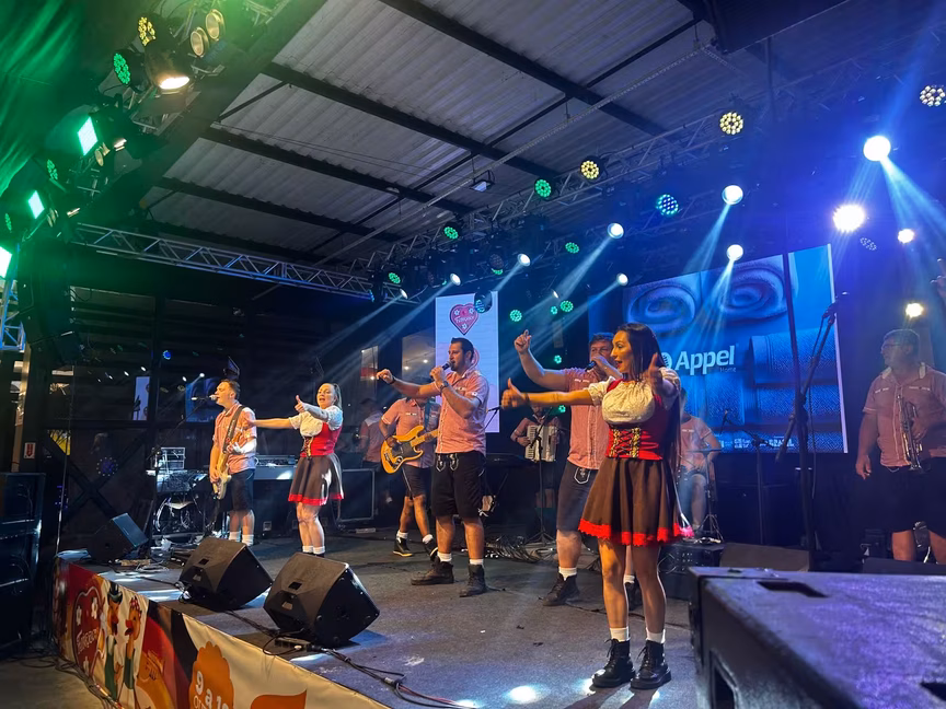 Mas a festa está longe de acabar. A programação segue intensa ao longo da madrugada. Às 22h30 ocorre o Concurso de Chopp em Metro, seguido pela apresentação da banda D’Fiebes, às 23h.