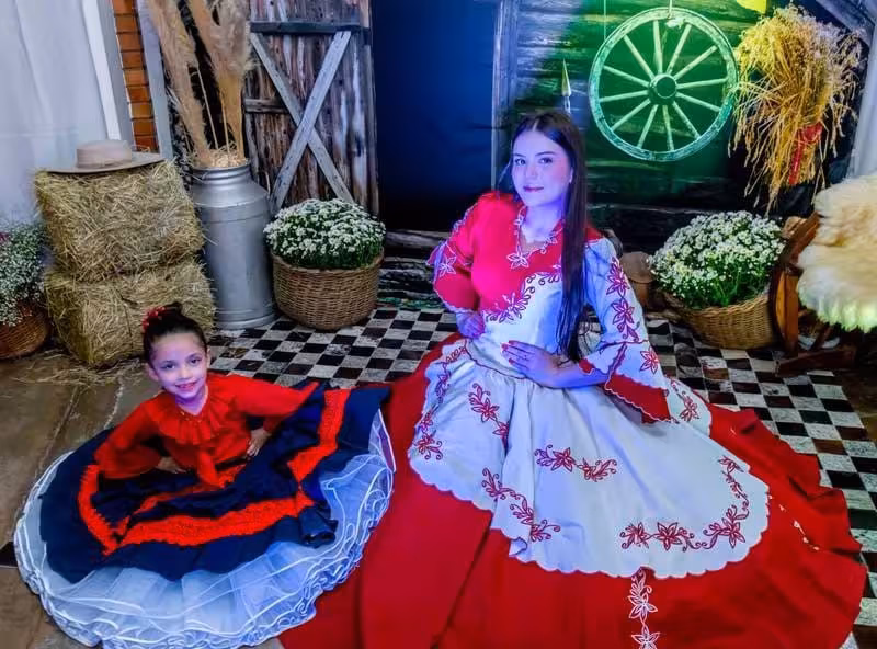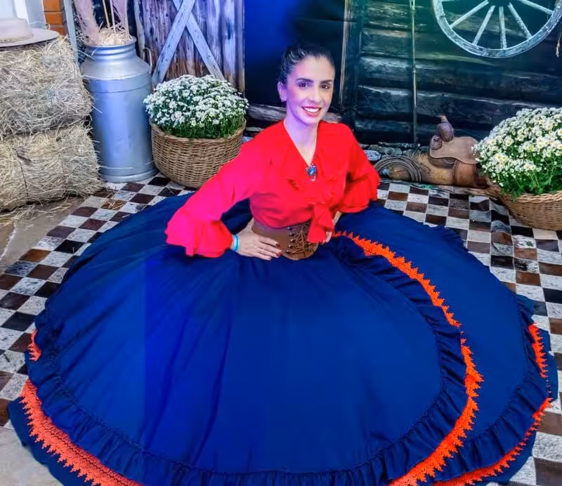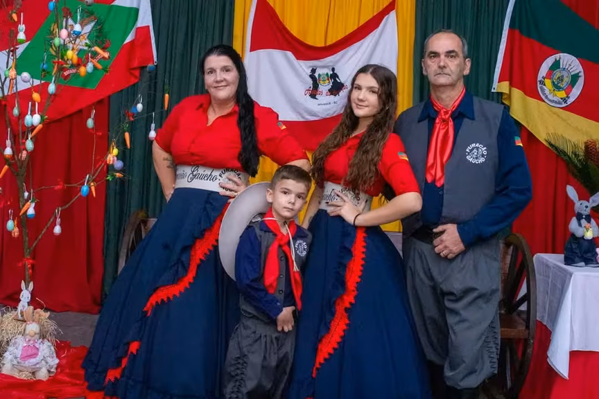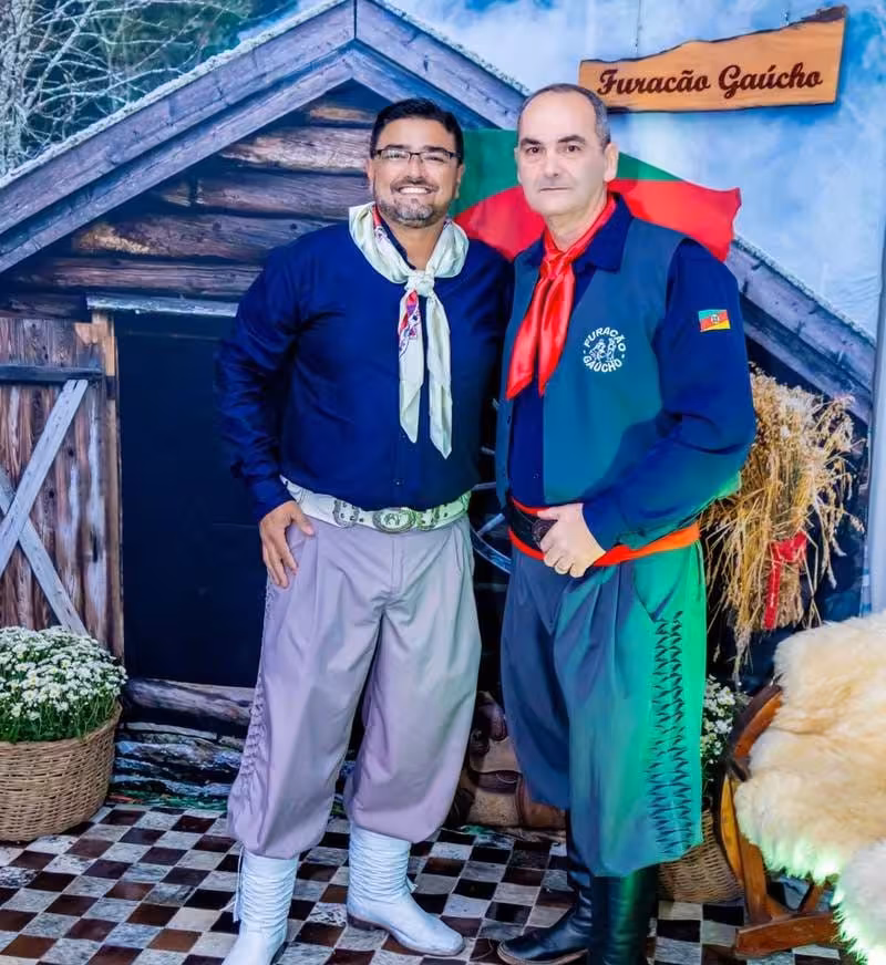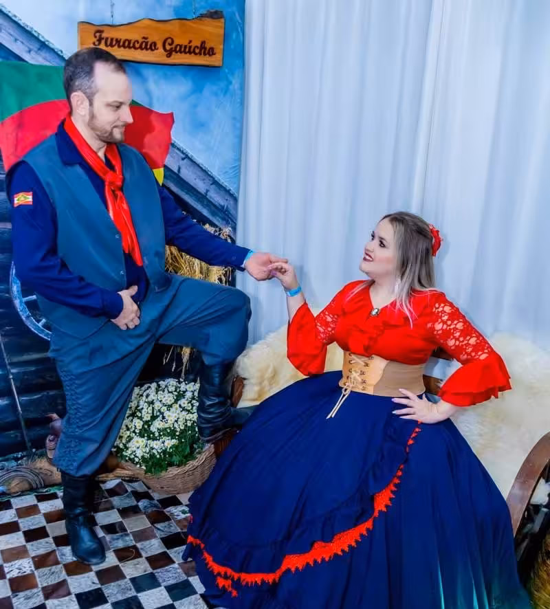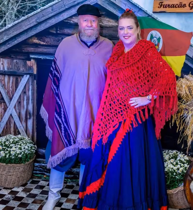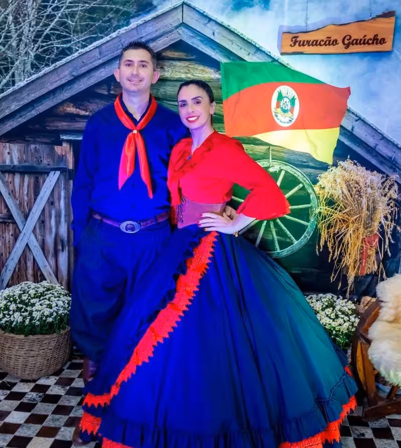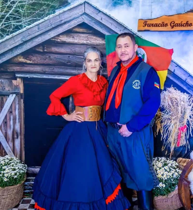 Miguel Frainer Filho e Andreia Frainer, casal patrão do grupo Furacão Gaúcho, representam com orgulho a tradição gaúcha em Brusque/Arquivo: Maísa Frainer
