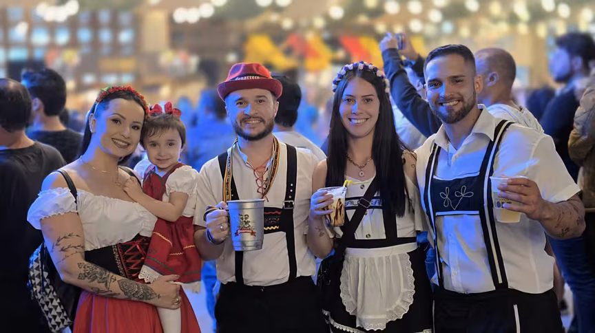Bandas típicas germânicas conduziam danças animadas, brindes e momentos de confraternização ao som de melodias que atravessam gerações.
