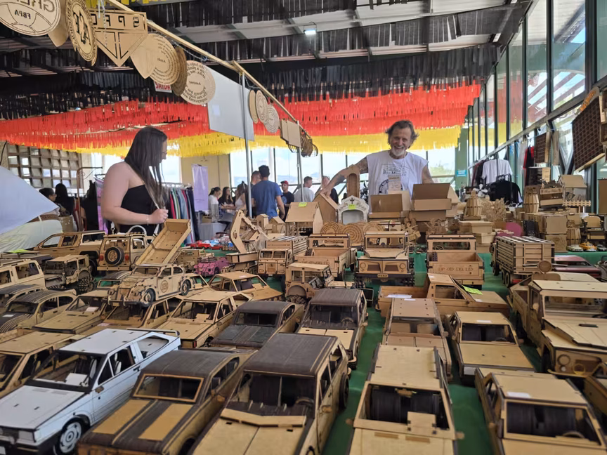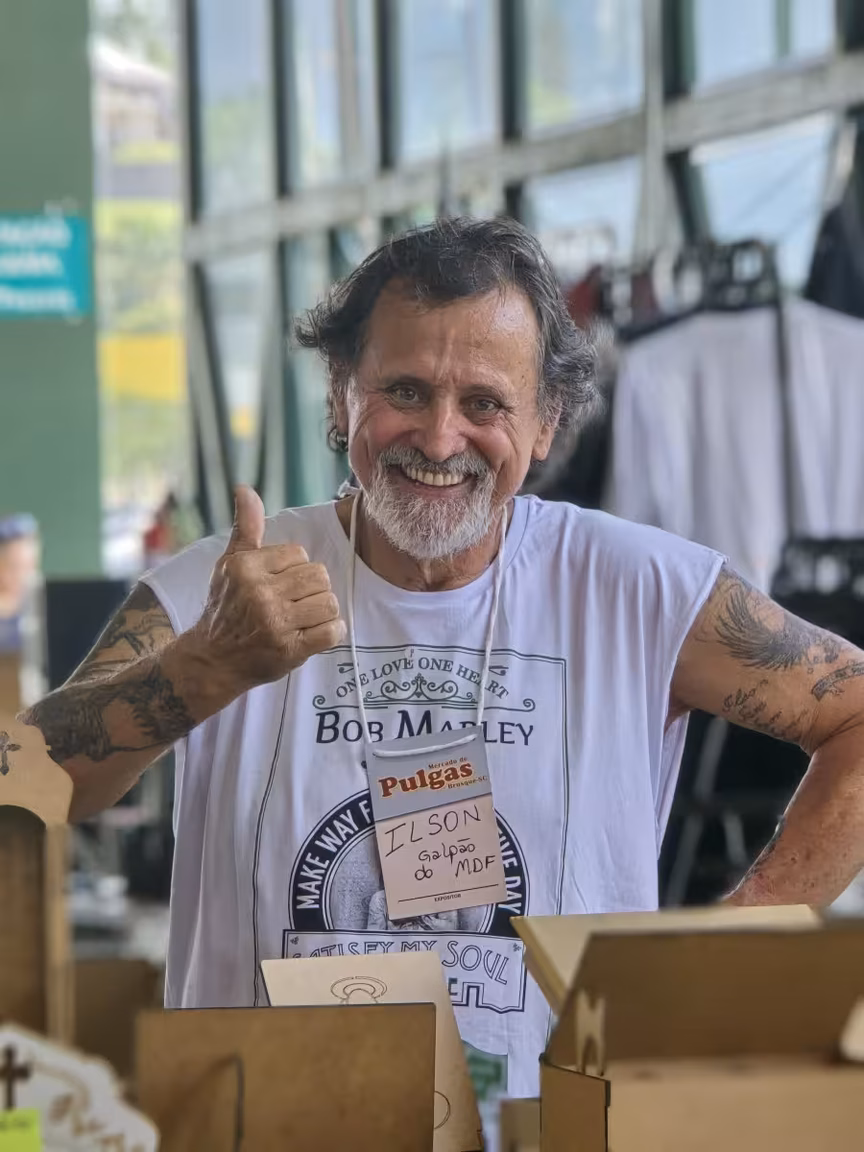 Logo após os anúncios, as imagens captam, de forma vívida e inspiradora, toda a essência deste domingo especial no Mercado de Pulgas, em Brusque.