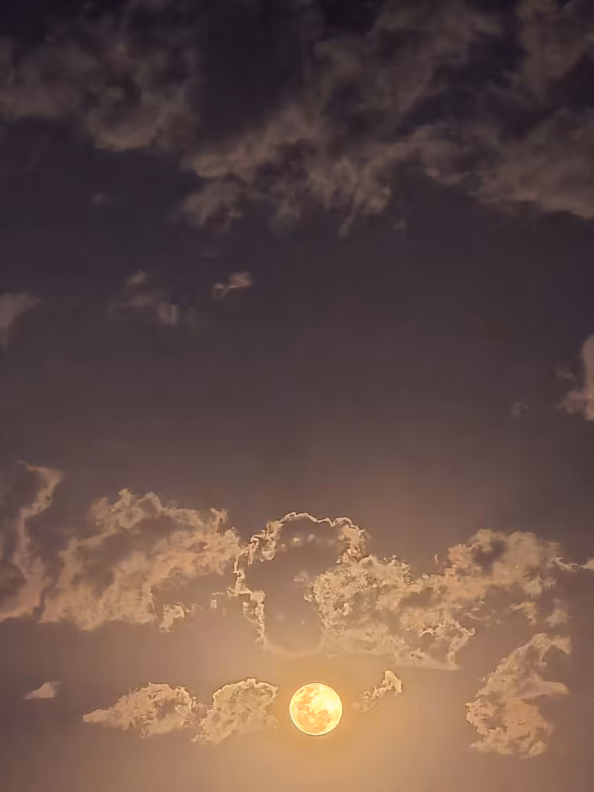 À medida que a noite avançou, a lua cheia assumiu então o protagonismo que antes pertencia ao sol poente, dominando o céu com imponência e clareando a cidade com sua luz prateada.