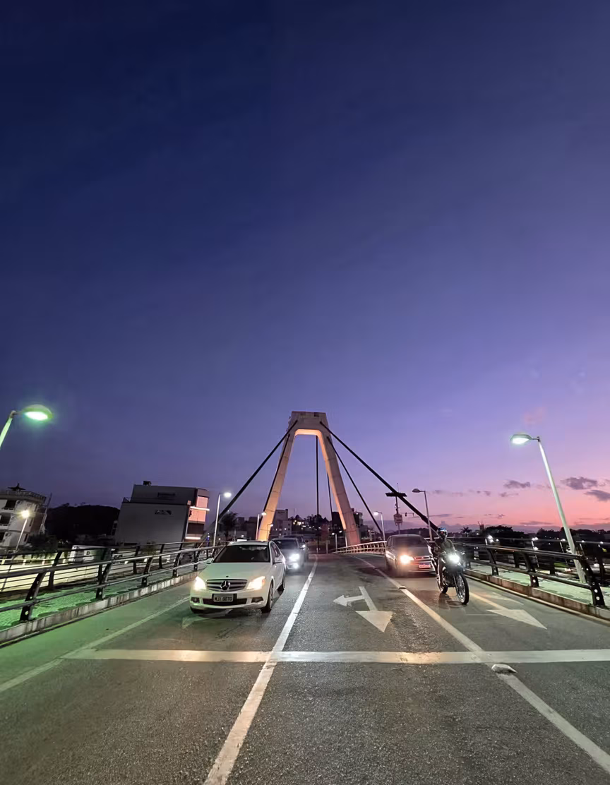 Antes mesmo de a lua despontar no horizonte, o céu de Brusque já chamava atenção com um pôr do sol de cores intensas, seguido por um crepúsculo suave que, aos poucos, parecia preparar o palco para o espetáculo lunar que viria.