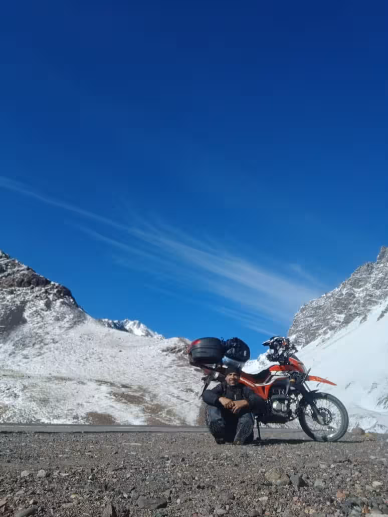 O ronco da moto contrastou com o silêncio majestoso dos picos andinos, criando uma sinfonia única de movimento e contemplação.