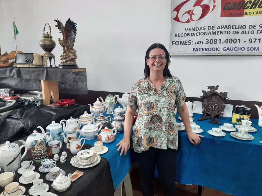 Já a Diana Verani, de 45 anos, da Espaço Verani Antiguidades tem um processo diferente na hora de encontrar as suas relíquias. Com loja em Balneário Camboriú, ela se especializou na venda de louças antigas de porcelana depois de muito acompanhar o marido que é colecionador de vinil e aparelhos de sons antigos.
