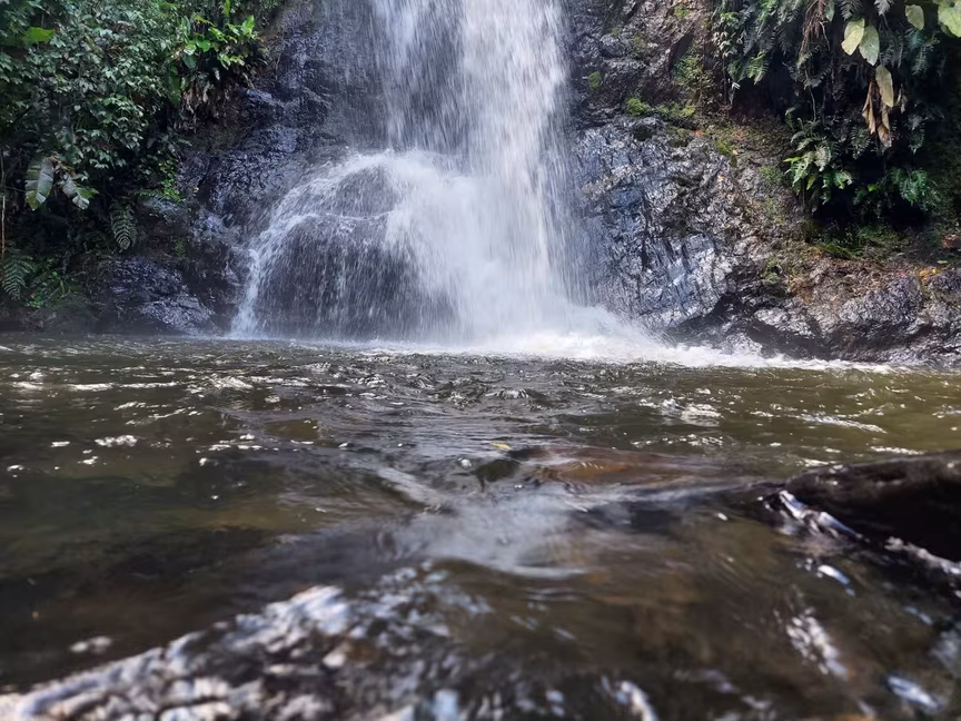 O piso, constantemente úmido, devido à proximidade com a cachoeira, pode tornar-se traiçoeiramente escorregadio, exigindo cautela a cada passo.