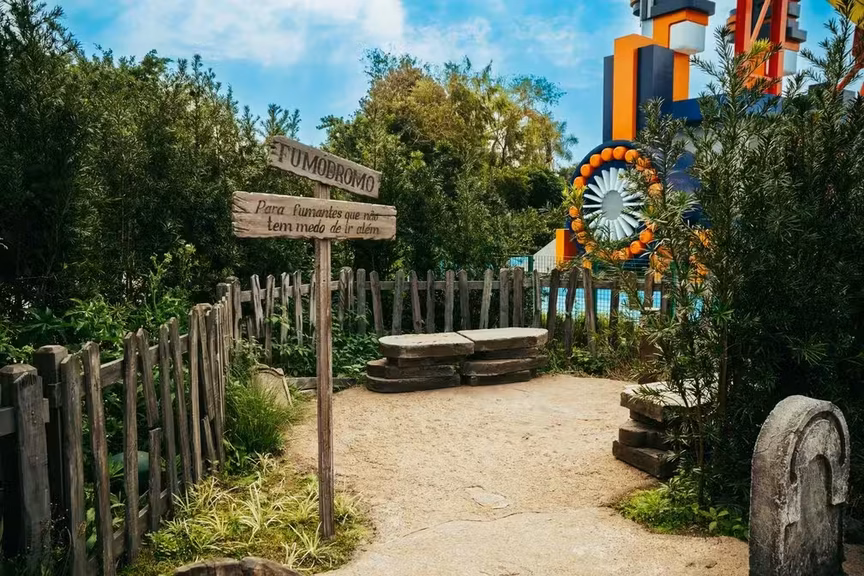 Considerado o melhor parque de diversões do Brasil e o quarto melhor do mundo em 2024 pelo site TripAdvisor, o parque agora conta com um novo espaço que inclui uma placa sinalizando a entrada para o fumódromo. "Para fumantes que não têm medo de ir além", é a mensagem exibida na estrutura.