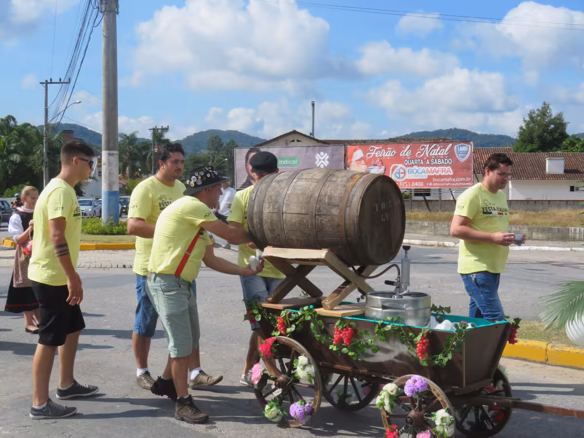 Acontece neste sábado, 29, em Guabiruba, a 3ª Sfilata del Vino, que em português significa Desfile do Vinho. O evento inicia às 9h, na rótula próximo à NCA Malhas, no bairro Imigrante, e tem previsão de término para as 10h30 na rótula que dá acesso ao bairro Pomerânia. O desfile é uma forma de divulgar a 10ª Festa Italiana no Centro do município, já que o evento acontece no Lageado Alto, a aproximadamente 18 quilômetros de distância. O evento acontece no dia 21 de março, no Salão Santo Antônio. Os participantes serão grupos organizados da Associação Cultural Italiana de Guabiruba (Acig) e também famílias descendentes dos imigrantes vindos da Itália foram convidadas a mostrar suas histórias através dos carros alegóricos. Durante a Sfilata del Vino serão distribuídos mais de 100 litros de vinho para as pessoas que estiverem prestigiando.