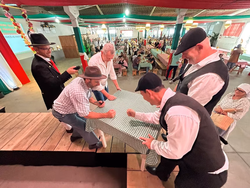 Com cardápio tradicional completo, músicas italianas famosas e competições típicas para lá de divertidas, não houve quem não se divertisse no evento que ocorre no Mirante Santo Antônio, no Lageado Alto, até o domingo, 10.