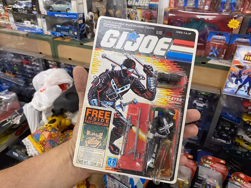 Ainda lacrado, o boneco é de 1988 e é raro. Marcelo Pereira Bueno, da Universo Relíquias, o comprou de um colecionador em um evento. Este colecionador adquiriu o boneco nos Estados Unidos e o guardava há muitos anos. O vendedor é de São José e frequenta o mercado de pulgas há 6 anos. Valor: R$ 2 mil.