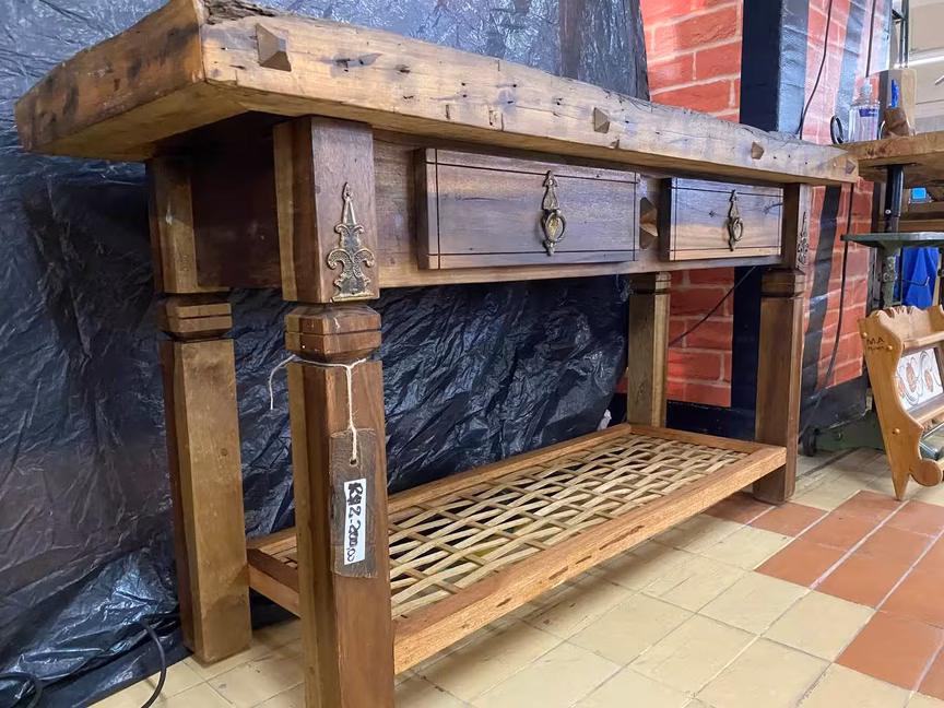 Não é antiguidade, mas parece. Feito com madeira de demolição, como madeira de lei, peroba e canela, o móvel aparador foi montado em dois meses por Adelcio Ebbing e Alcione Ebbing, da M. A. Hard Wood Móveis Artesanal, de Brusque. Como é um hobby, o trabalho acontece em poucas horas por dia e é mais trabalhoso por ser feito de material reciclado. Valor: R$ 2,2 mil.