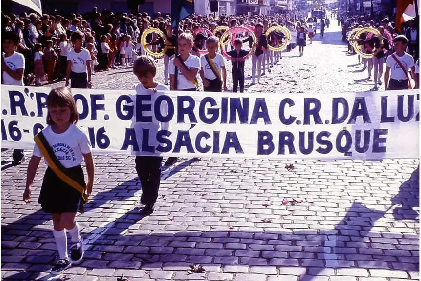 Uma multidão de brusquenses acompanhou os desfiles e demais eventos alusivos à data, compondo um cenário que permanece preservado no imaginário coletivo — e, felizmente, também nos registros fotográficos.