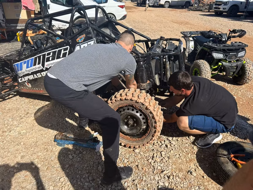 "Nesta quinta-feira, por exemplo, tivemos que trocar o semieixo da gaiola que quebrou. Outras coisas que costumam dar problema são a caixa de câmbio e a embreagem. Trazemos as peças para repor e tudo faz parte da adrenalina. Se não quebra, não tem graça", brinca o preparador.