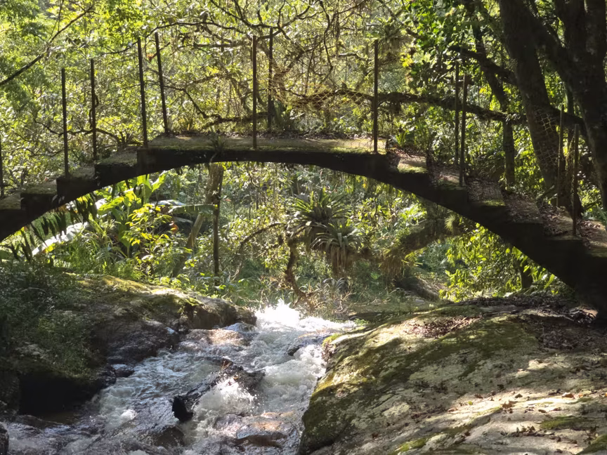 A velha passarela que cruza o riacho ainda está lá, resistindo ao tempo e simbolizando os momentos inesquecíveis vividos por gerações.