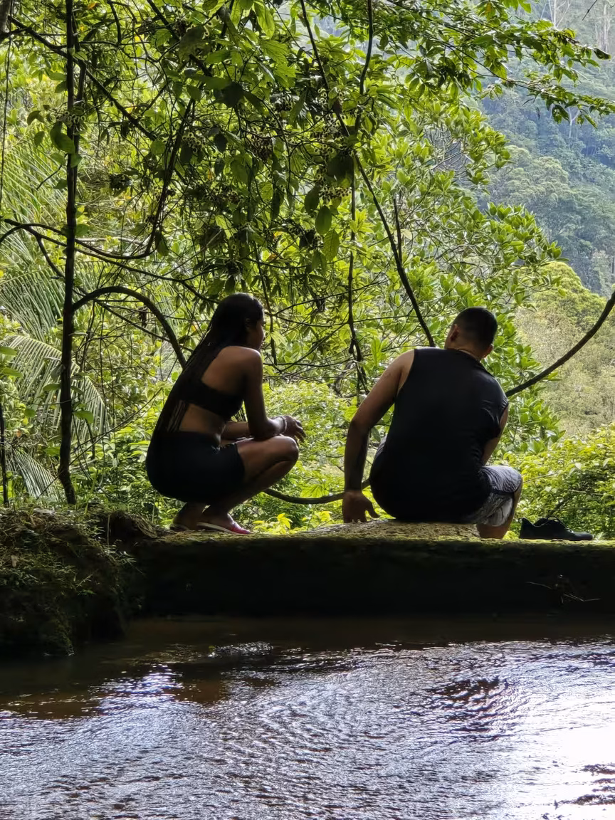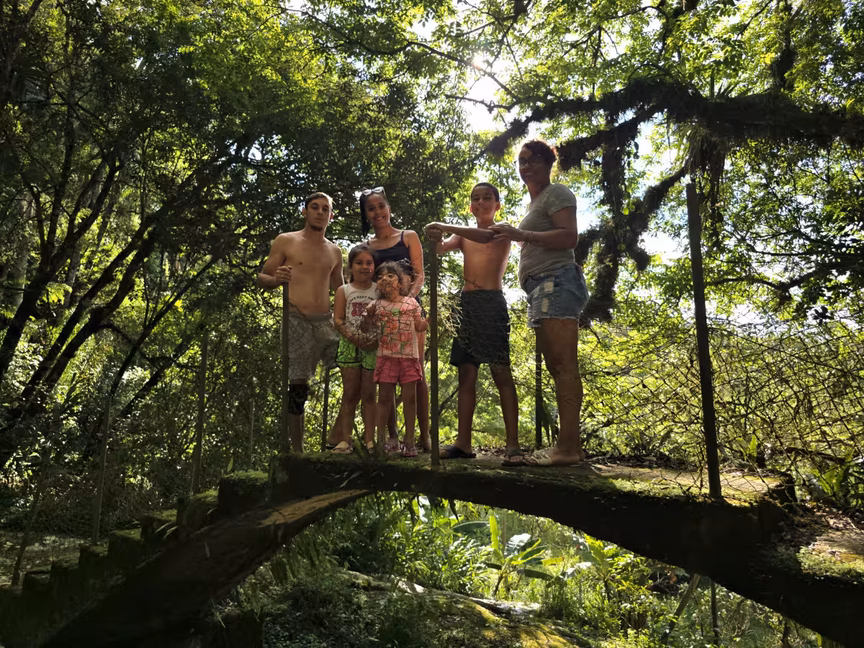 As árvores, majestosas, oferecem sombra para grupos que se reúnem em piqueniques animados, enquanto o som da queda d'água ecoa como uma melodia nostálgica, acompanhando o riso das crianças e as conversas calorosas das famílias.
