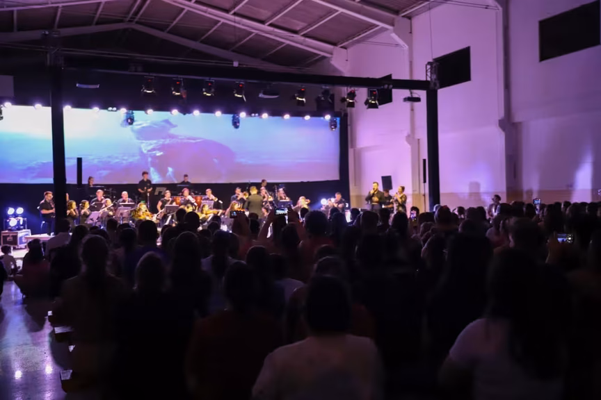 A Orquestra Municipal de Guabiruba apresentou um repertório vibrante, trazendo à vida as trilhas sonoras de filmes icônicos como Rei Leão, Frozen, Moana, Vingadores, Piratas do Caribe e Madagascar. Cada nota ressoou profundamente no público, que pôde reviver cenas marcantes do cinema enquanto a música se desenrolava com precisão e sentimento.