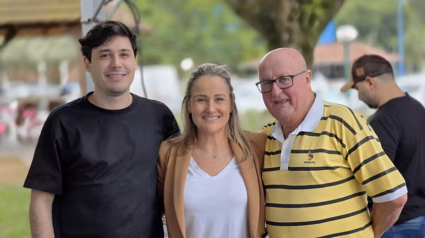 Osmar Boos, presidente do Clube Guarani, com a filha Ana Helena e o neto Bruno/Foto: Ciro Groh/O Município