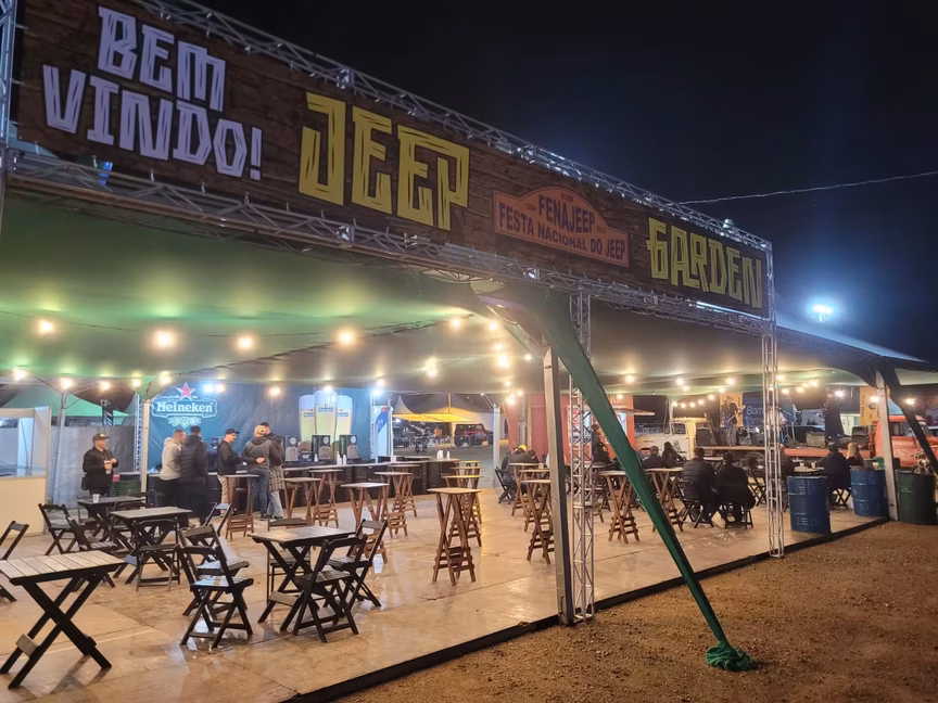 "Já tivemos o Espaço Jeep Garden na edição de 2023. Nós melhoramos o bar para esse ano e temos uma novidade, que são as bandas que vão se apresentar”, comenta Guto. O Espaço Jeep Garden fica localizado próximo à bandeira do Brasil, no complexo da festa.