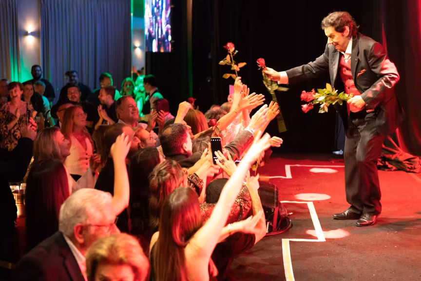 Conhecido por sua voz marcante e interpretações de clássicos italianos e internacionais, o artista embalou o público em uma noite de nostalgia e celebração das origens.