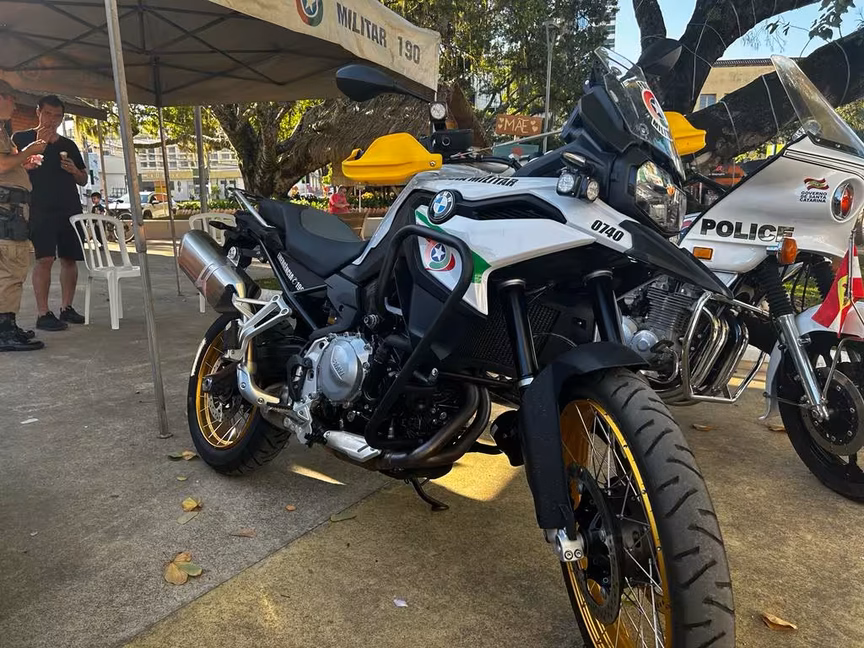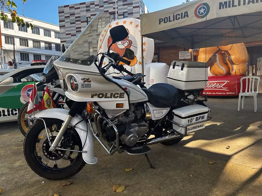 Na praça, está um Fusca, da PM de Blumenau, que foi totalmente restaurado, um Camaro, da PM de Balneário Camboriú, e duas motocicletas, uma Kawasaki, também de Blumenau, e uma BMW 800, da PM de Brusque.