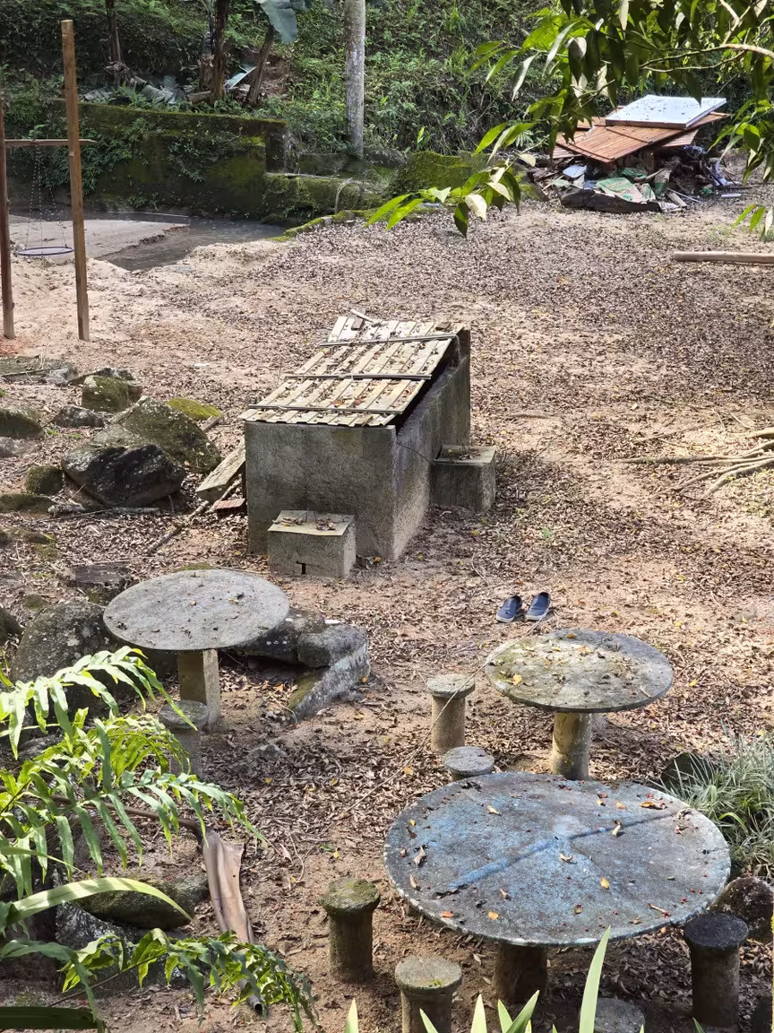 As mesas espalhadas pelo espaço, cobertas pela sombra generosa da vegetação, ainda guardam ecos de momentos felizes.
