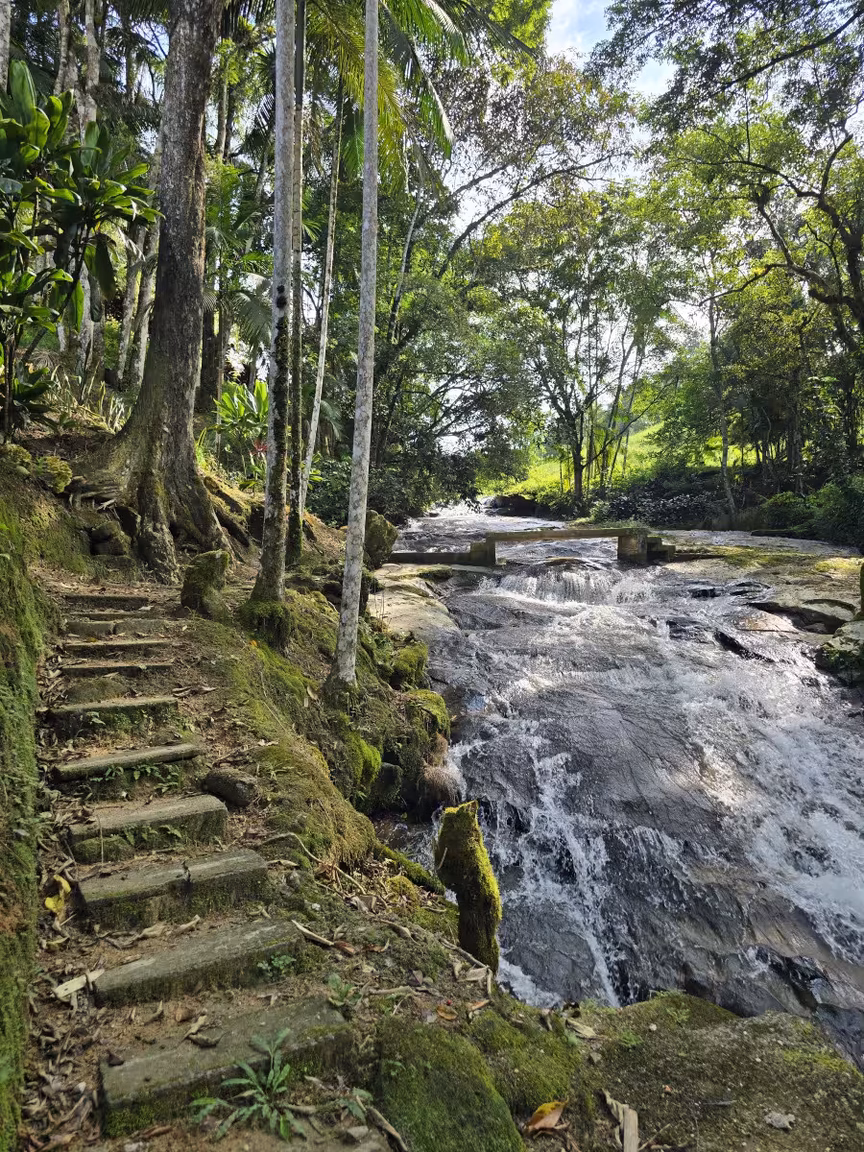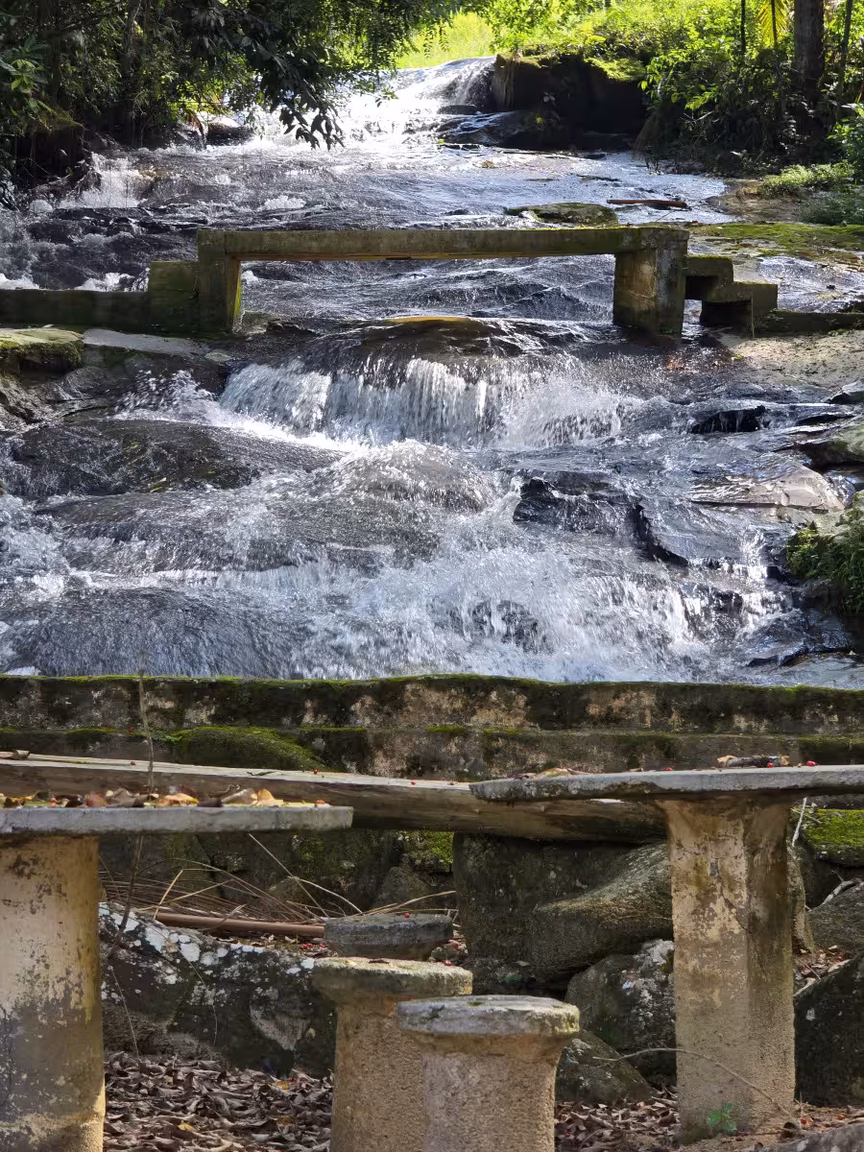O verde exuberante abraça o local, mantendo sua atmosfera acolhedora e protegendo-o do toque abrasador do sol, como se a própria natureza fizesse questão de preservar sua magia.