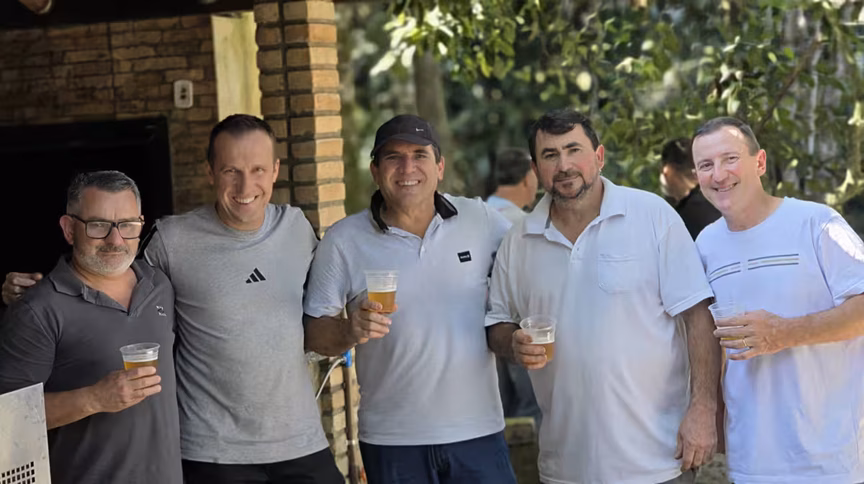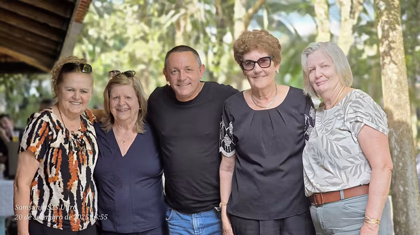 Em meio ao clima de primavera e ao verde acolhedor de um sítio localizado na rua Holstein, em Guabiruba, ex-alunos da Escola João Boos das turmas de 1988 a 1991, celebraram o reencontro com seus ex-professores e ex-diretores.
