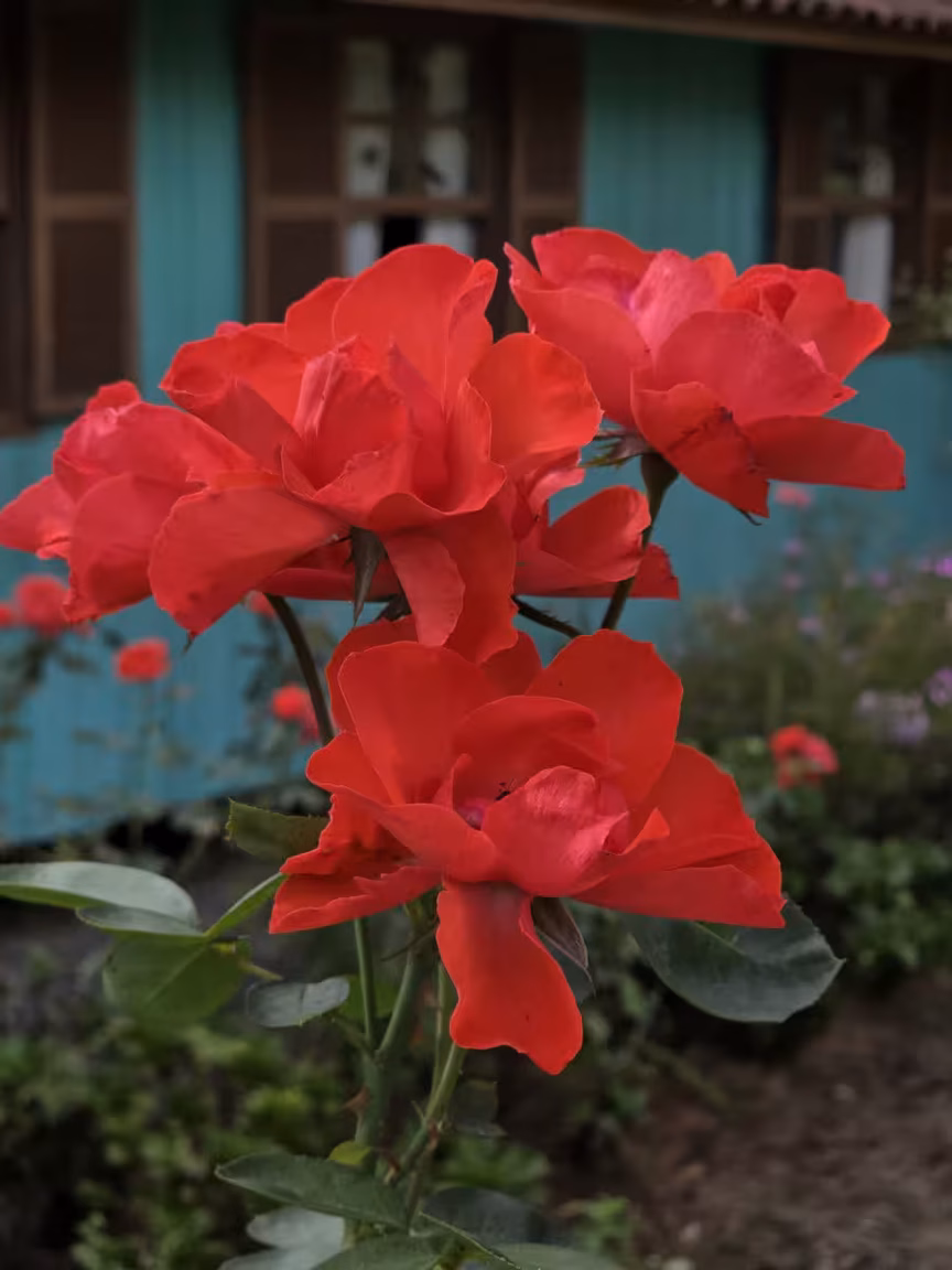 Cada flor que desabrocha carrega a delicadeza do seu toque, das rosas aveludadas às outras espécies que balançam suavemente sob a brisa.