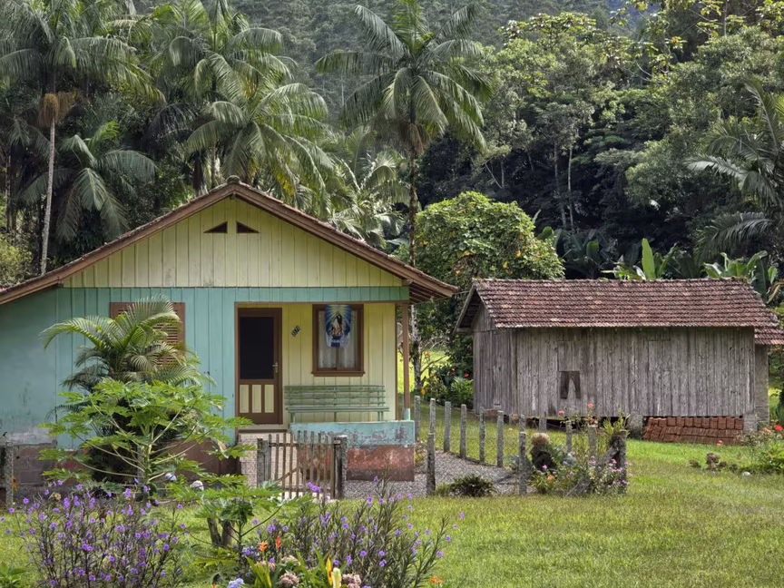 2. Casas antigas e paisagens então brilham sob o calor tardio de Guabiruba
