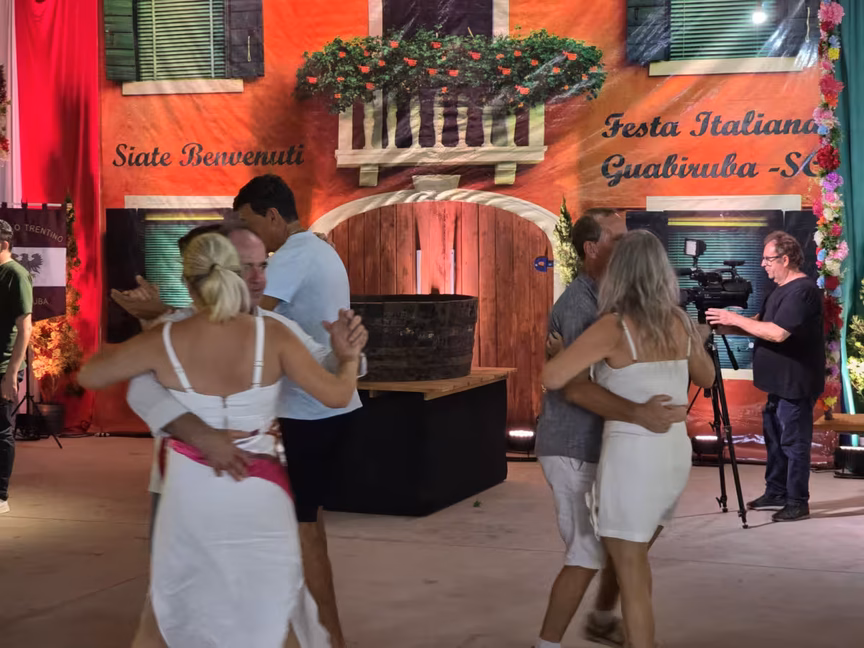 Em sintonia com a tradição e a alegria, o prefeito Valmir Zirke e sua esposa Wiliane então encantam a todos com sua dança na Festa Italiana de Guabiruba/Foto: Ciro Groh/O Município