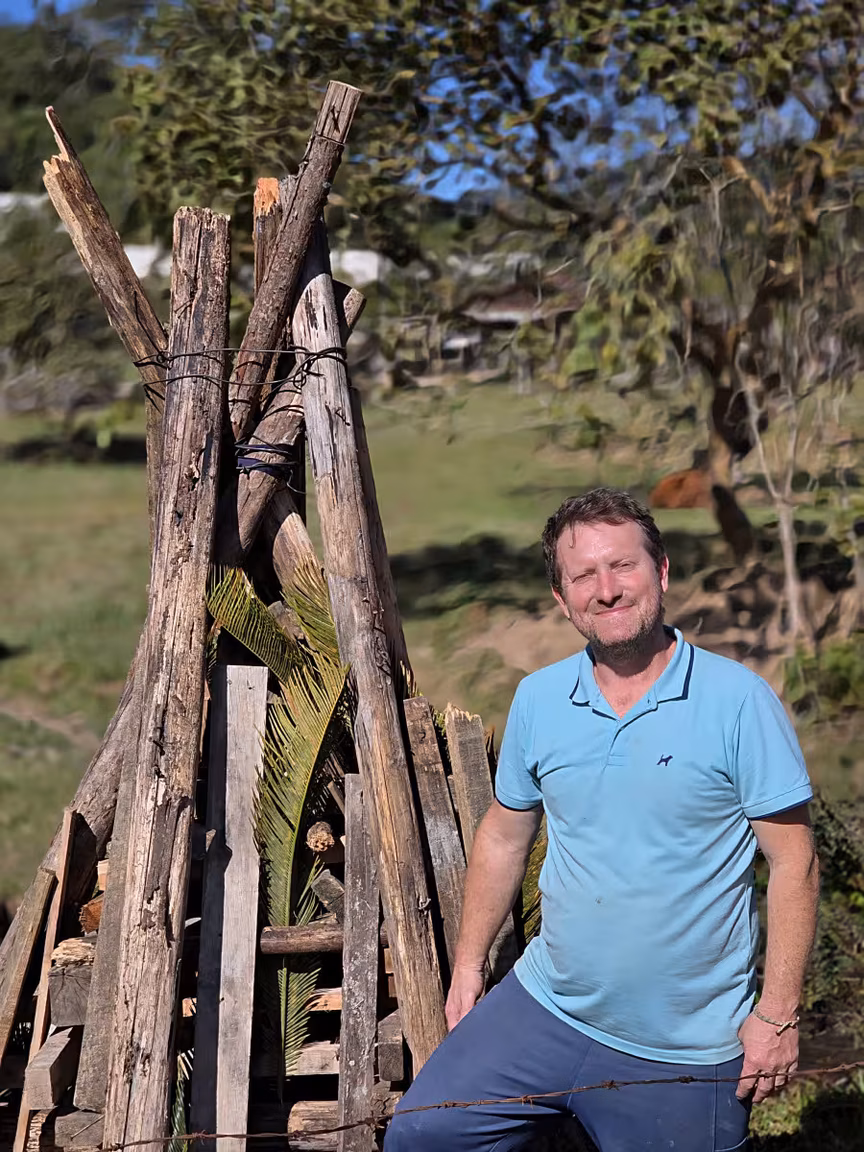Ao lado da fogueira ainda adormecida, o frio da manhã então contrasta com o calor que está por vir/Foto: Ciro Groh/O Município