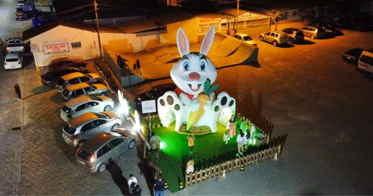 Na entrada da La Quarta Pasqualina, evento realizado pela Prefeitura de Nova Trento, está disponível para visitação o maior Coelho de Páscoa de Santa Catarina. Sua estrutura tem 7,15 metros de altura. O evento segue até o domingo de Páscoa, 9.