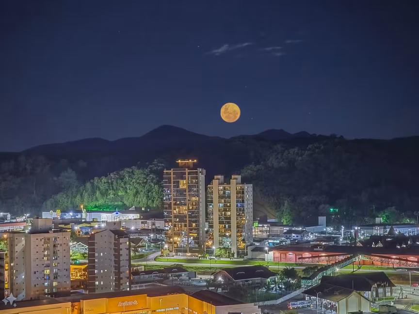 Na noite de sexta-feira, 24, os moradores de Brusque foram agraciados por um espetáculo natural magnífico, tendo a lua sendo a protagonista, iluminando e embelezando ainda mais a cidade.