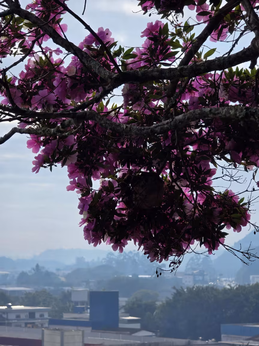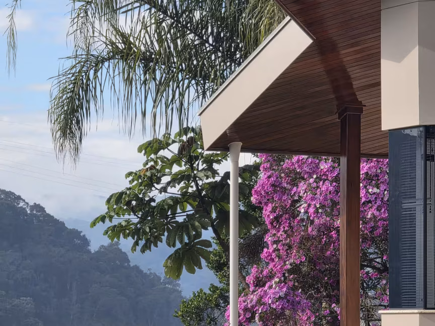 No alto de uma colina em Brusque, com vista ampla e privilegiada do bairro Dom Joaquim, uma residência chama a atenção não apenas por sua localização singular, mas também pelo magnífico espetáculo que se desenrola ao seu redor.