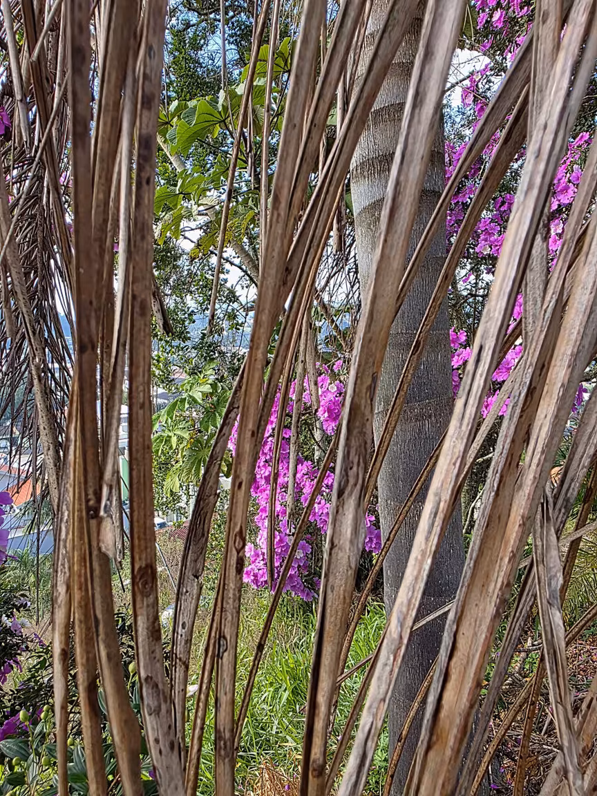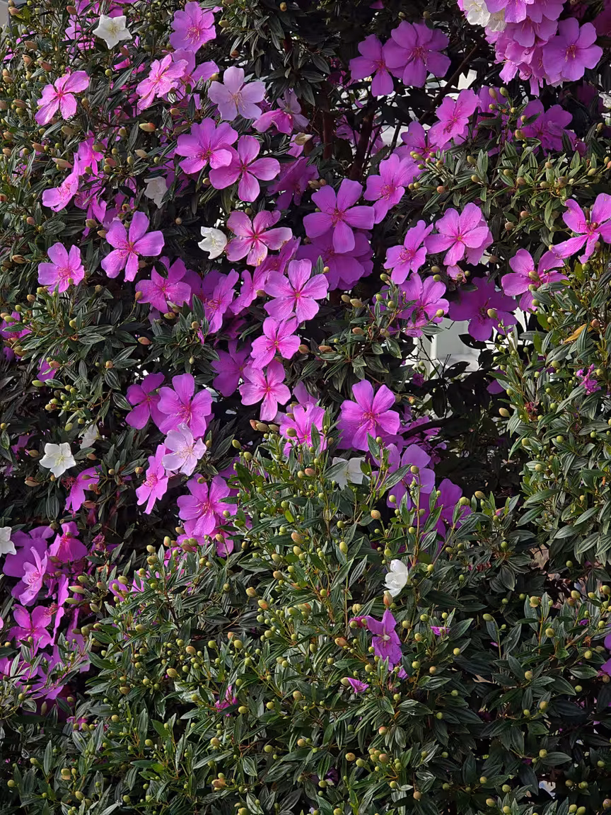 E, embora os manacás estejam espalhados por muitos jardins da cidade, poucos florescem com tanta exuberância quanto os que se encontram neste recanto elevado, pertencente ao casal Bambinete.