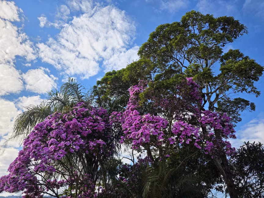 Manacás florescem no alto da colina e encantam jardim em Brusque