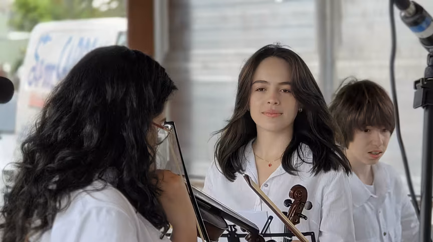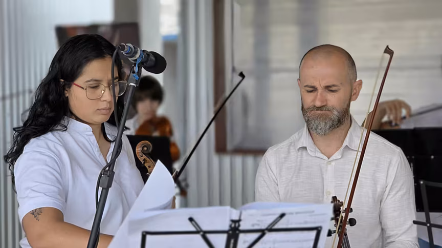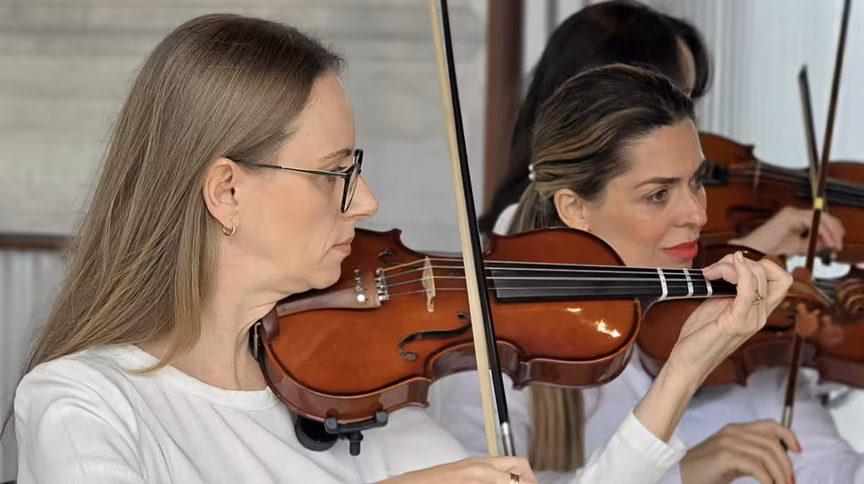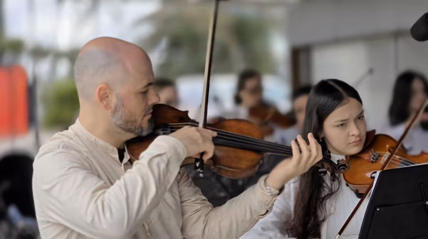 A apresentação da Orquestra de Câmara e Escola de Música do Cescb, realizada na Avenida Governador Luiz Henrique da Silveira, à margem esquerda, no acesso ao River Mall, converteu o espaço urbano em um cenário de pura emoção.