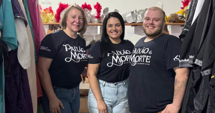 Na equipe de apoio, Gean auxilia o grupo em todos os detalhes. “É o nosso Severino”, diz Raquel, em uma risada. Os três atuam nos bastidores do espetáculo desde 2017, portanto, já são quatro edições feitas.