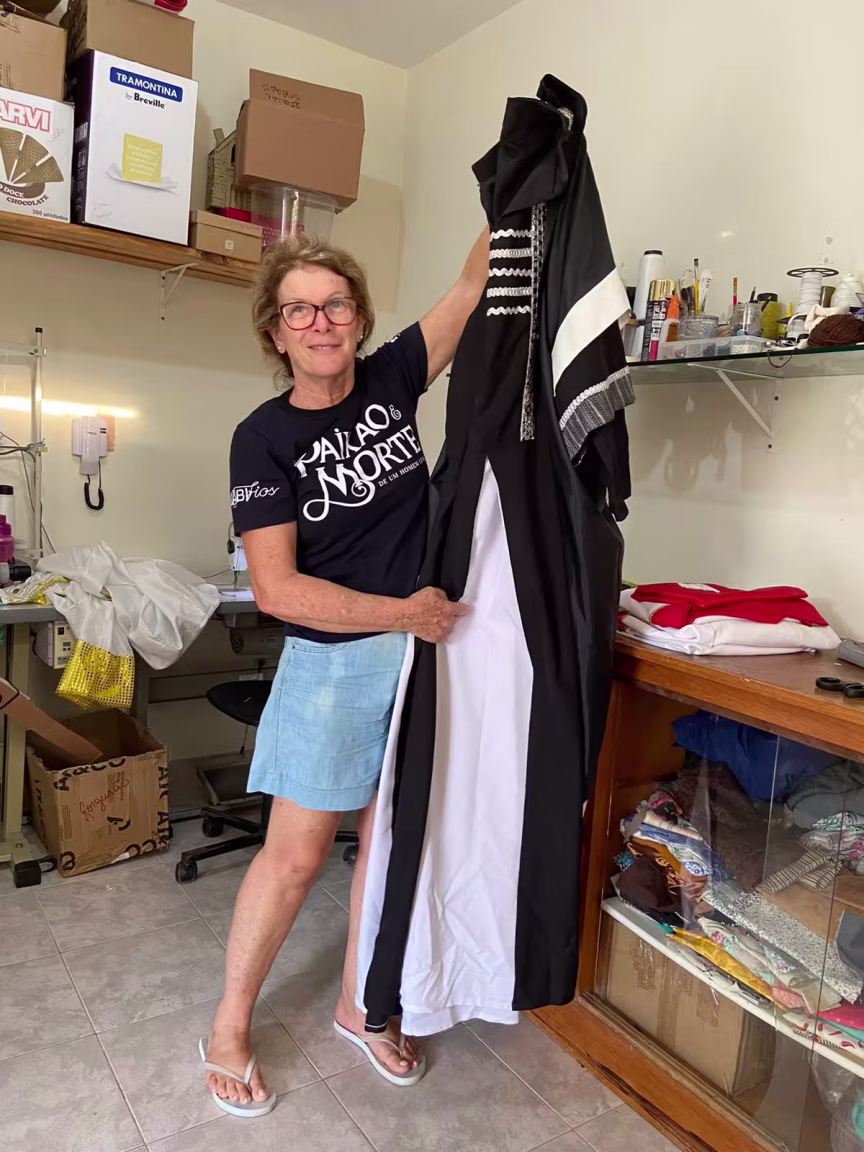 Em casa, Iria faz os ajustes nos figurinos | Foto: Divulgação