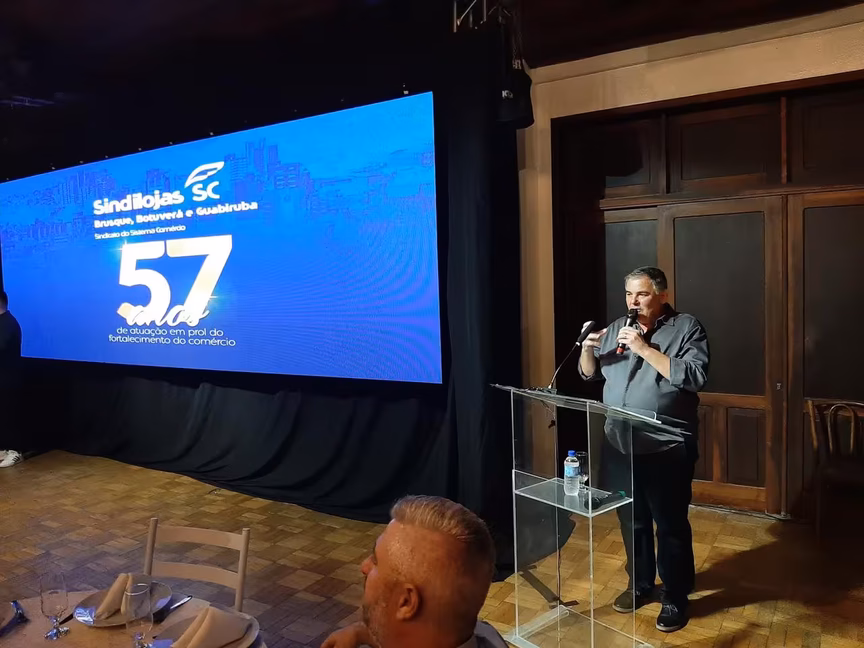 Foi realizada na noite desta terça-feira, 30, na Sociedade Esportiva Bandeirante, a solenidade de aniversário de 57 anos do Sindicato do Comércio Varejista e Atacadista de Brusque (Sindilojas). A cerimônia, que reuniu autoridades, empresários, parceiros e convidados, celebrou não apenas o passado, mas também prestou homenagens aos líderes e empreendedores que influenciaram a jornada do Sindilojas.