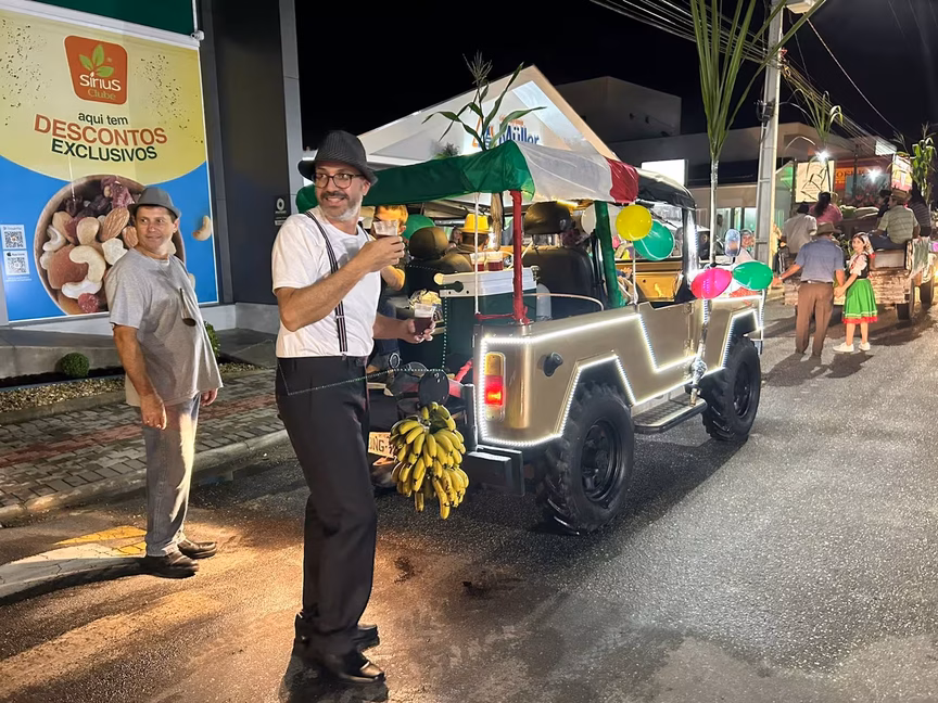 Já David Zimmermann Júnior, de 34 anos, levou para as ruas seu Jeep Willys 1950. Ele é responsável por rebocar a "Carretela del Vino", que distribuirá vinho gratuitamente a todos que estiverem prestigiando o desfile.