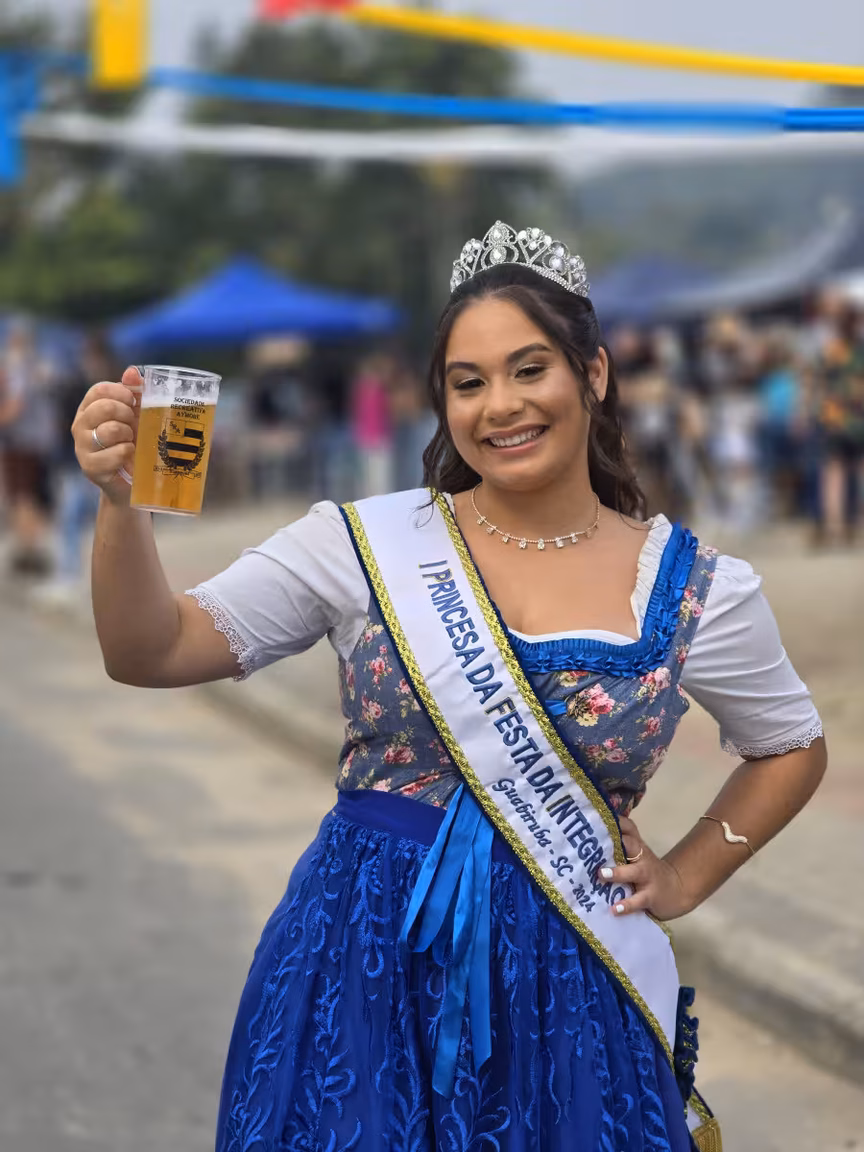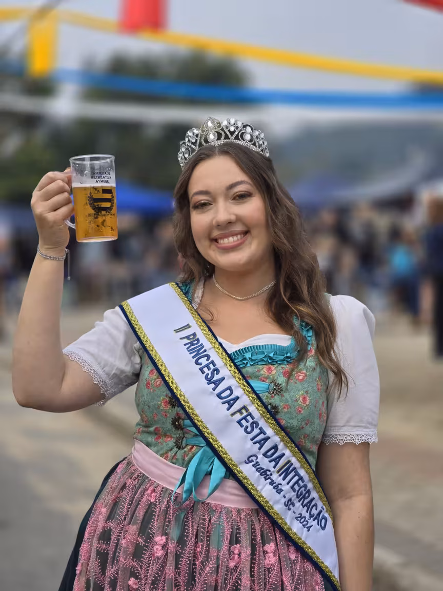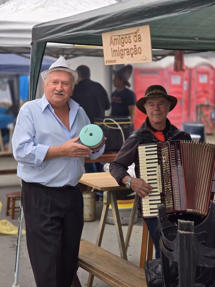 A festa também conta com bandas instrumentais que animam o público com músicas locais e marchinhas alemãs, criando uma atmosfera festiva e acolhedora.