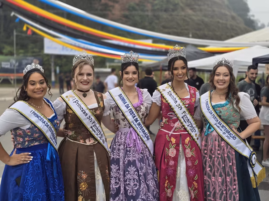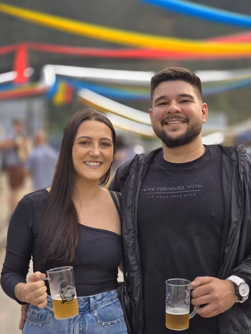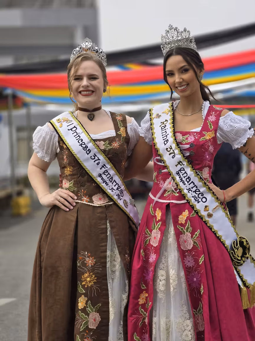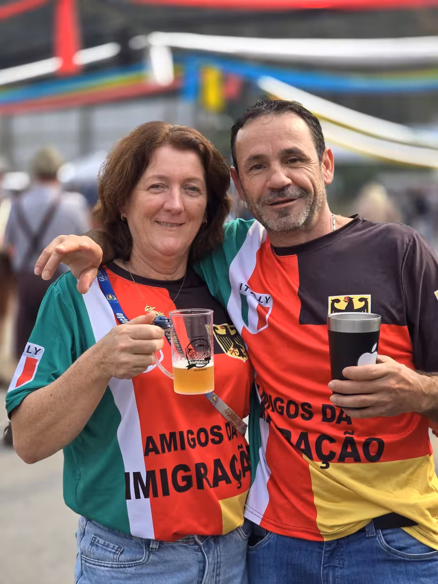 A festa também conta com bandas instrumentais que animam o público com músicas locais e marchinhas alemãs, criando uma atmosfera festiva e acolhedora.