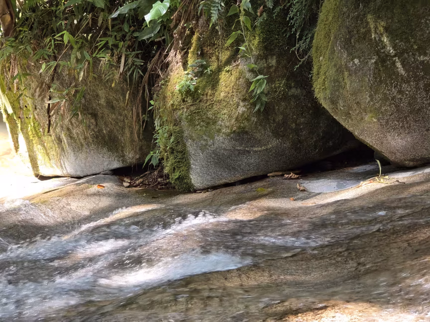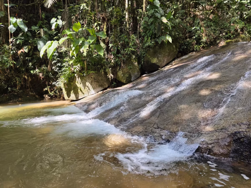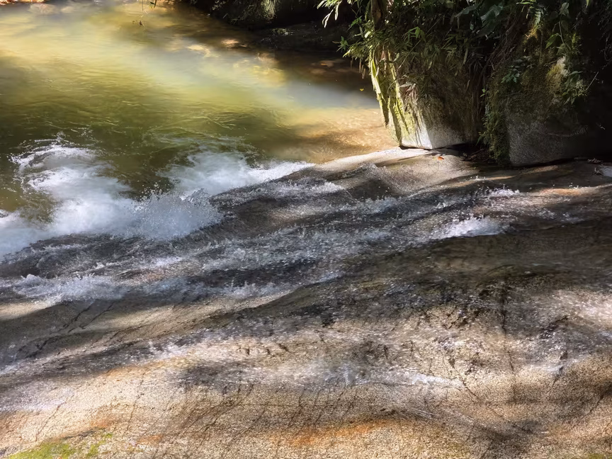 Mais do que um refúgio contra o calor, a cascata guarda um diferencial que encanta seus visitantes: sua superfície lisa permite que as águas moldem um escorregador natural, transformando o banho em uma experiência inesquecível.