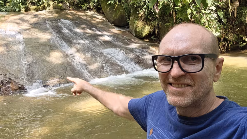VÍDEO – Cascata oculta na mata de Guabiruba surpreende com escorregador natural