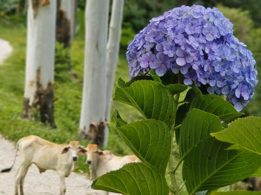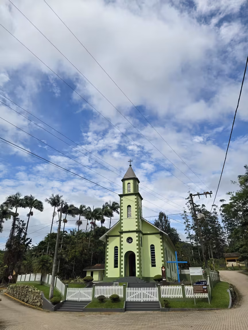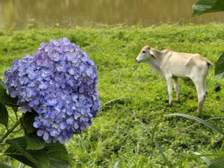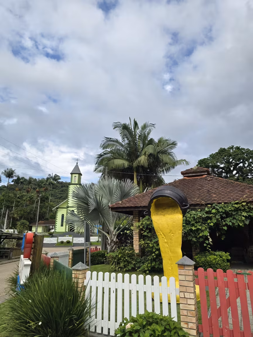 A pintura de suas paredes, contrastando com os tons profundos da vegetação, confere uma sensação de paz, como se ali o tempo decidisse repousar por alguns instantes.