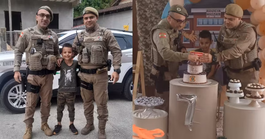 O aniversário de sete anos de Luiz Gustavo, no sábado, 15, foi marcado por uma surpresa inesquecível. Apaixonado pela Polícia Militar desde os dois anos de idade, o menino teve o sonho realizado ao receber a visita de policiais durante sua festa.