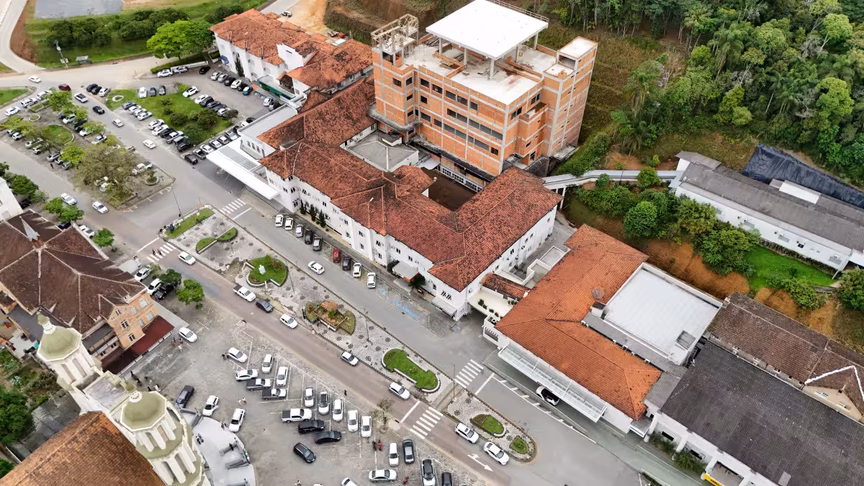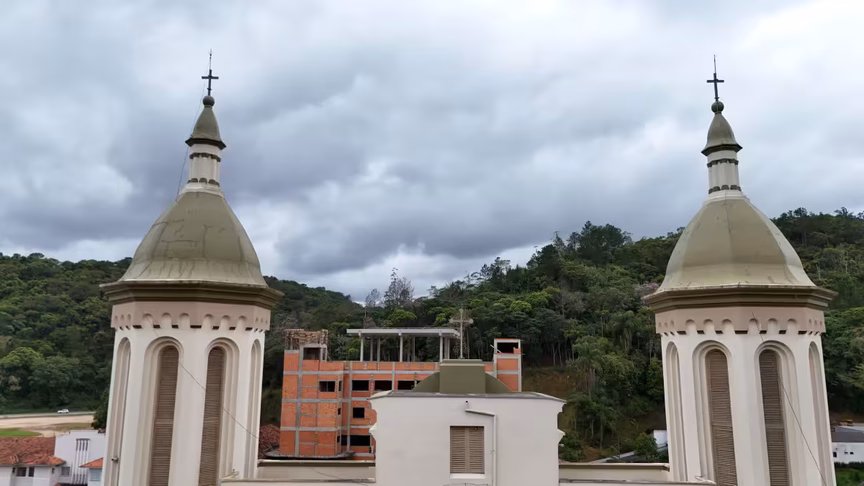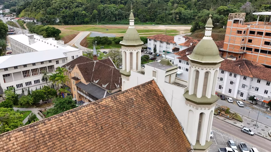 A combinação de cenários aéreos e terrestres vieram compor um mosaico da grandiosidade do Santuário de Azambuja, um marco histórico de Brusque com mais de um século.
