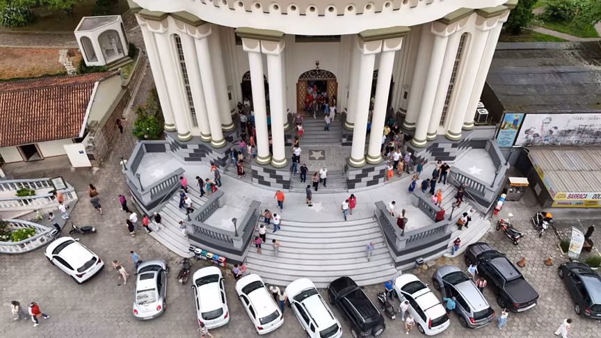 Assim, enquanto as preces se elevavam, as lentes das câmeras de celular e do drone imortalizavam o santuário em ângulos que antes poucos puderam apreciar.