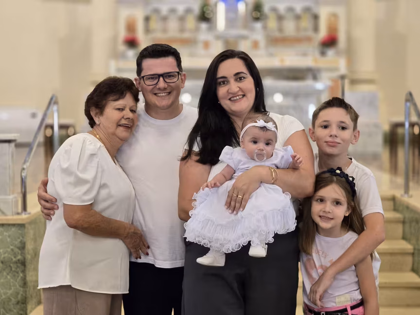 Um momento de fé e ternura em Azambuja, com a criança recém-batizada/Foto: Ciro Groh/O Município