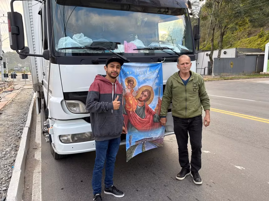 “Sem Deus, não somos nada. São Cristóvão é a nossa proteção. Pegar a estrada não é fácil. São muitos perigos. Eu sei o que faço nas estradas, mas os outros são o problema. O santo é um guia para nós”, afirma.